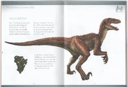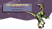 In the Jurassic Park universe, the term "Velociraptor" is applied to the genus of another dromaeosaurid dinosaur known as Deinonychus. The films, like the novels, followed the unusual taxonomy created by Gregory S. Paul, who believed that Deinonychus, as well as a few other species of dromaeosaurids, could be classified under the genus "Velociraptor".[1] As for the large size of the raptors, the novel raptors were sized up for an unknown reason by author Michael Crichton while the movie raptors were made larger per Steven Spielberg's request to him being unimpressed by the size of Deinonychus.